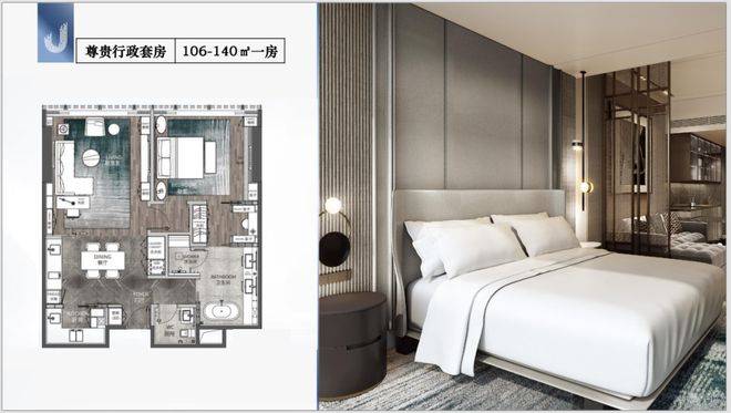 产品主打酒店服务式行政公馆,面积覆盖69到180平方米,户型从单间到三房都有对应。69-77平方米高级行政套房适合单身精英或纯投资;106-140平方米尊贵行政套房为一房设计,空间利用更灵活;118-141平方米CEO行政公馆是两房格局,满足小家庭需求;180平方米总统行政公馆则是三房顶级配置,私享感最强。